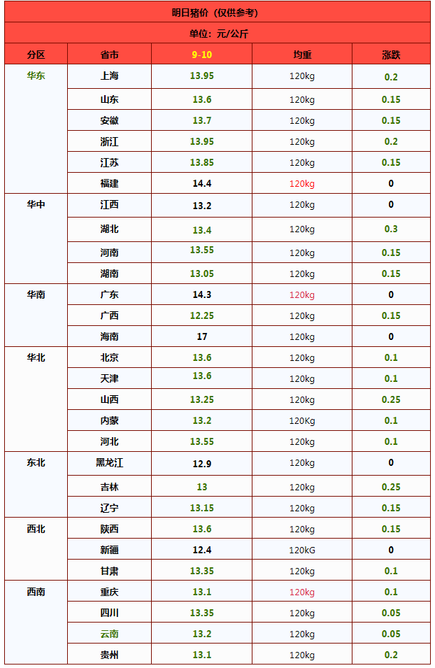 因此,在供需博弈下,目前,生猪市场基本面偏空,预计,9月10日,外三元瘦肉型生猪价格出栏均价在13.53元/公斤,后市关注集团猪企出栏节奏的变化以及屠宰场开工率的变化!