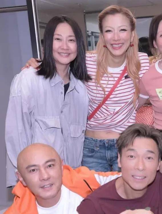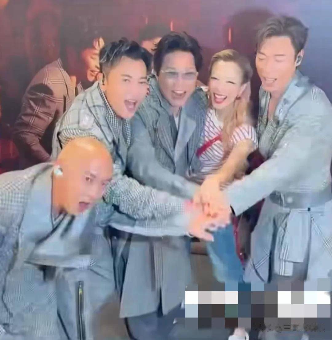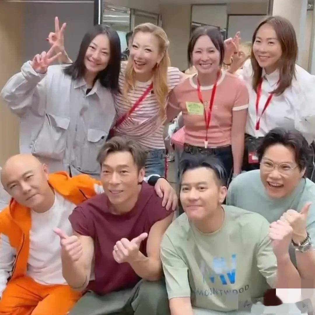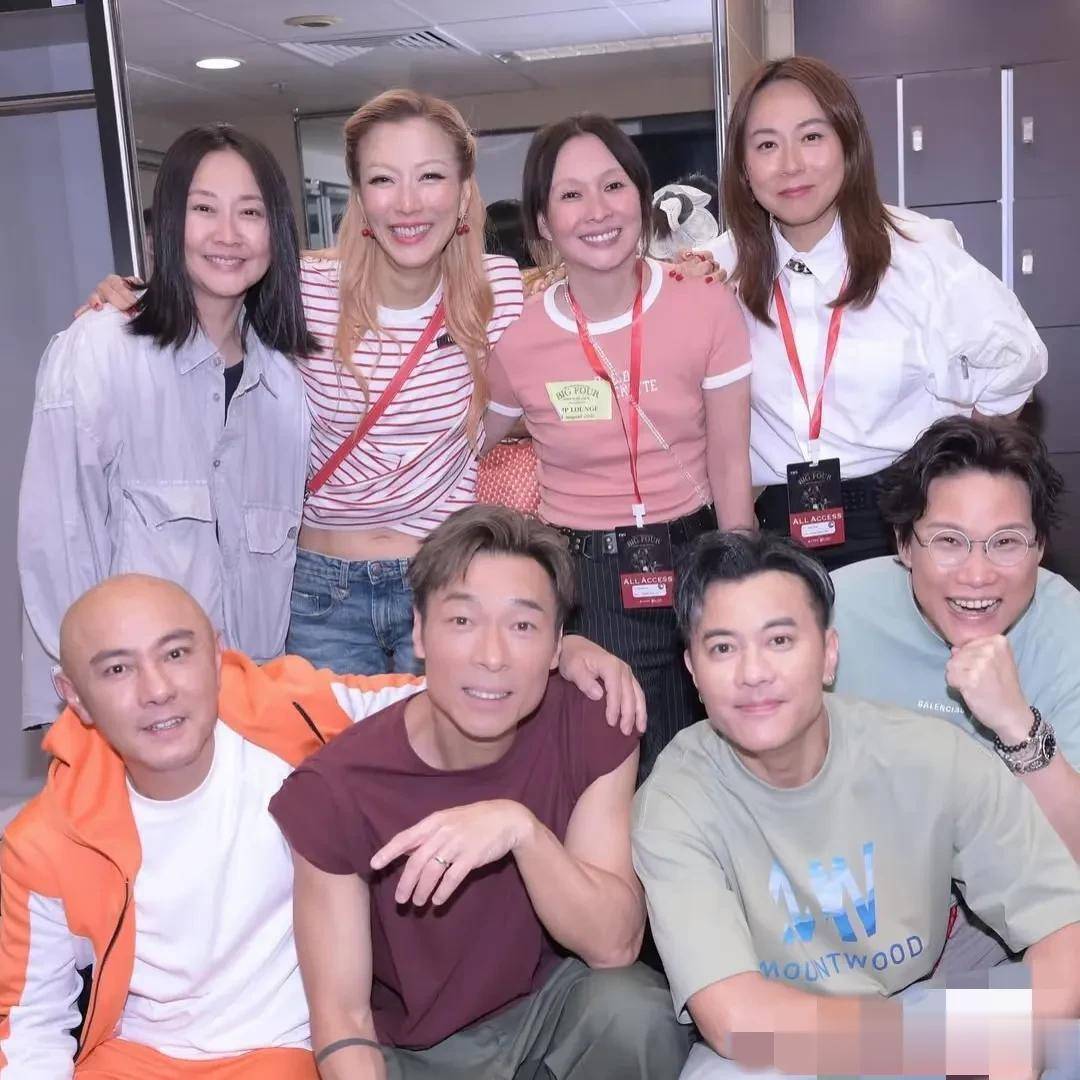 8月13日,郑秀文再次在社交平台分享演唱会后台照,是她们四对夫妻的合照,从郑秀文的穿着来看,这是演唱会首日的合照利鸿网,大家都笑容灿烂出现在镜头前,不得不说,他们每一对都很有夫妻相啊!